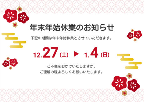 年末年始休業日のご案内